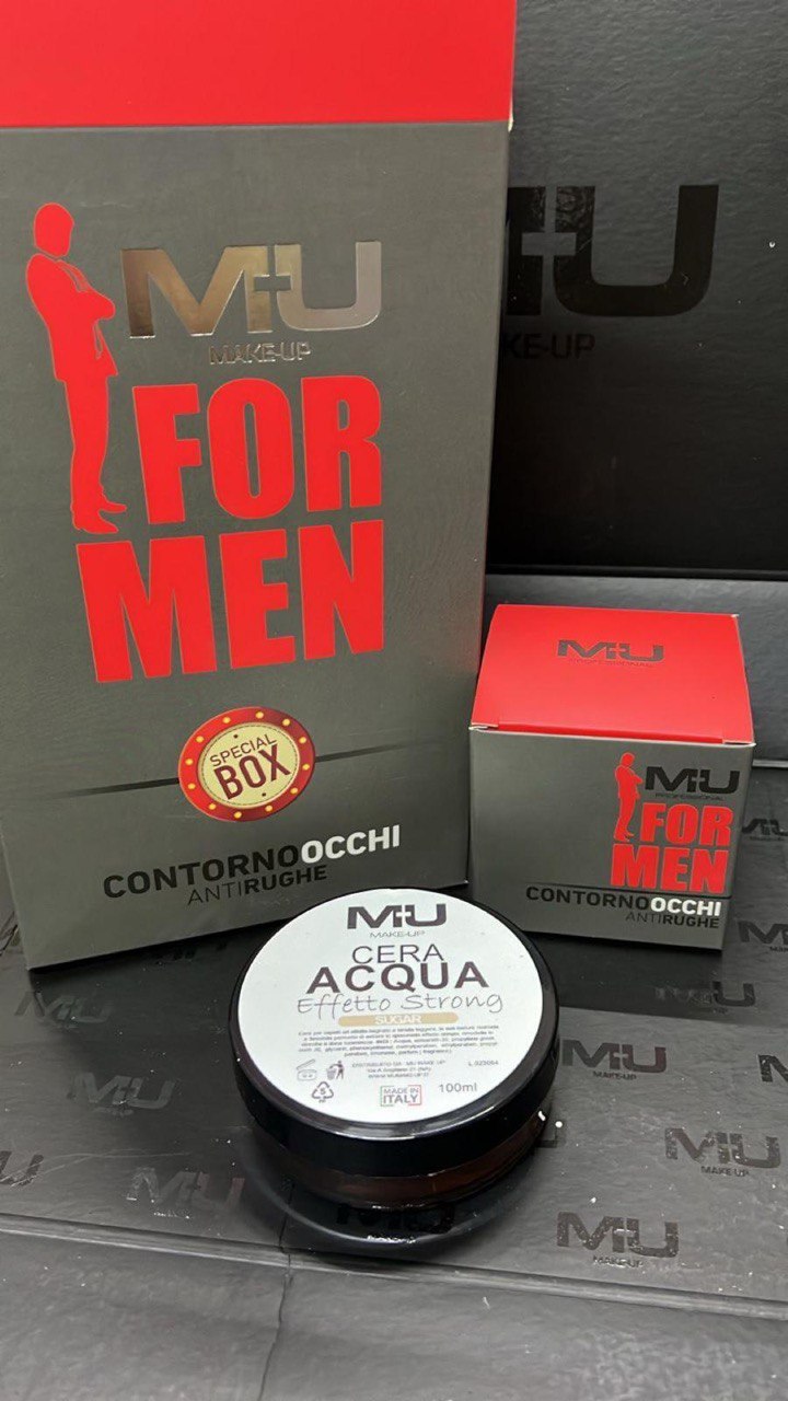 Kit uomo🧡 idea regalo🎁🎄 Crema uomo viso e collo 50 ml Cera effetto strong box regalo MU MAKE UP